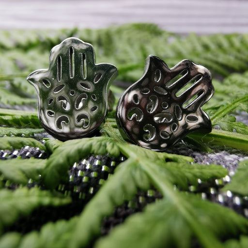 Edelstahl-Ohrstecker Fatima-Hände. Größe ca. 12x7x3 mm Die Hand der Fatima symbolisiert die schützende Hand Gottes. Bedeutung des Symbols: Schützt ...